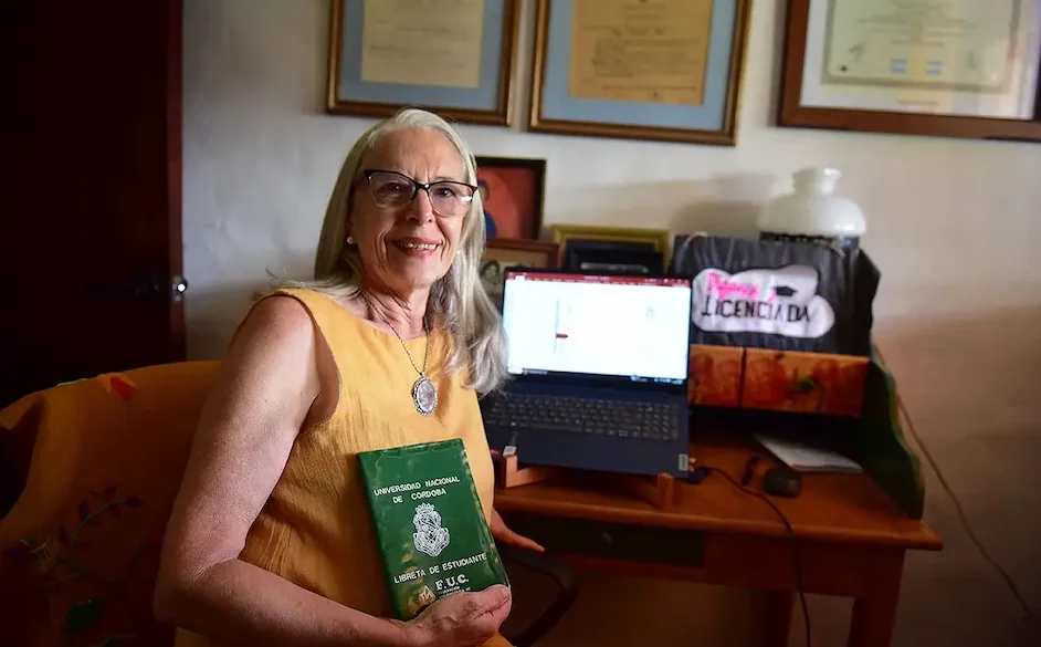 Finalmente, el 18 de febrero de 2026, a pocos días de cumplir 66 años, y acompañada por su directora de tesis, la Dra. María Marschoff, obtuvo su ansiado título.