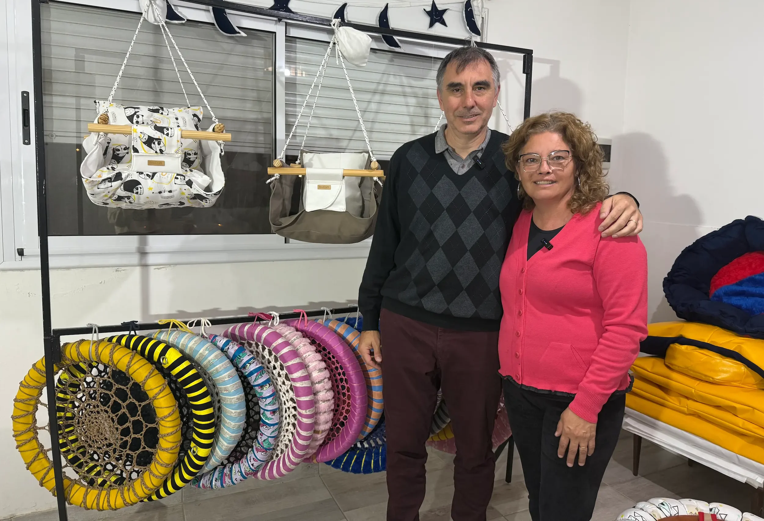 Hace nueve años, cuando nació su segunda hija, María Paula Martínez y Pablo Campana cavaron la primera grieta de lo que sería su destino profesional. En ese entonces, el desafío de entretener y cuidar a sus pequeñas lo resolvieron con creatividad: una hamaca hecha con un neumático de moto y retazos textiles que colgó en el patio como un inesperado refugio de juegos infantiles. Lo que fue un gesto de amor familiar, con el tiempo se transformó en un proyecto de triple impacto: social, ambiental y económico.