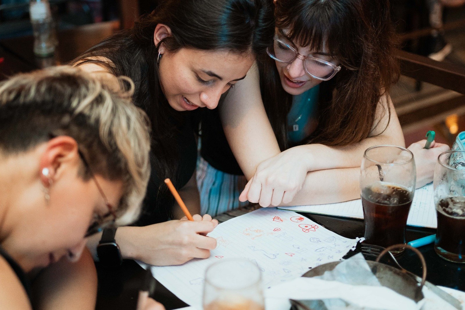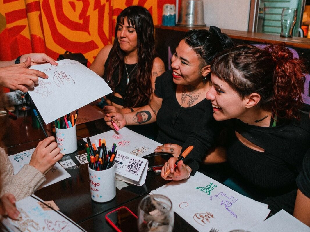 La terraza del bar Pez Volcán (Marcelo T. de Alvear 835 B° Güemes) empieza a poblarse cuando cae la tarde. Hay hojas, fibrones, risas, gente que se saluda como si se conociera de siempre y otras que llegan por primera vez. En ese clima distendido y creativo ocurre la Dibujam, un encuentro que ya se volvió referencia en la escena artística cordobesa y que tiene detrás la mirada y el impulso de Anto Capriotti, diseñadora gráfica, ilustradora, directora de arte y creadora de contenido, conocida como “From South”.