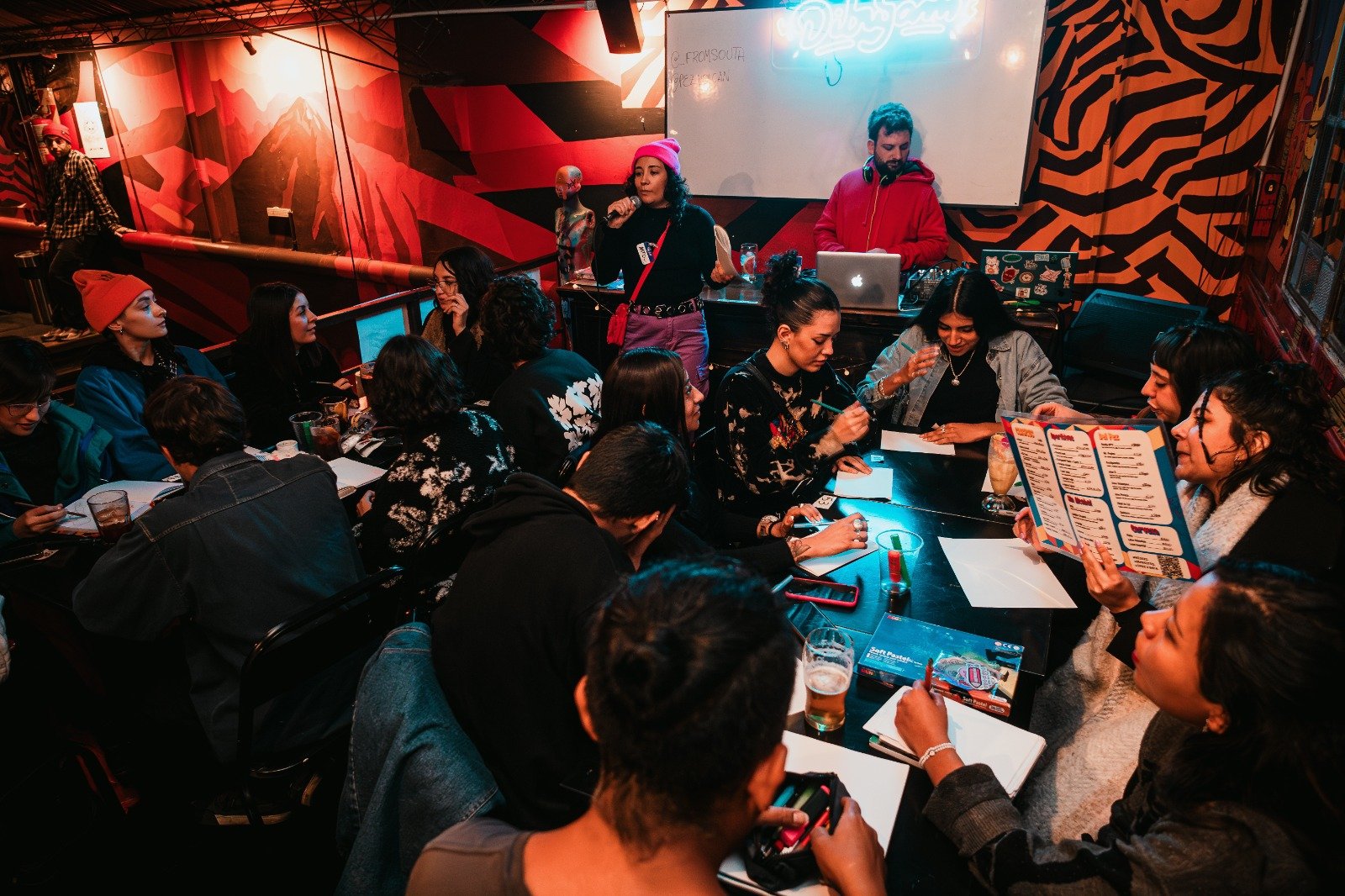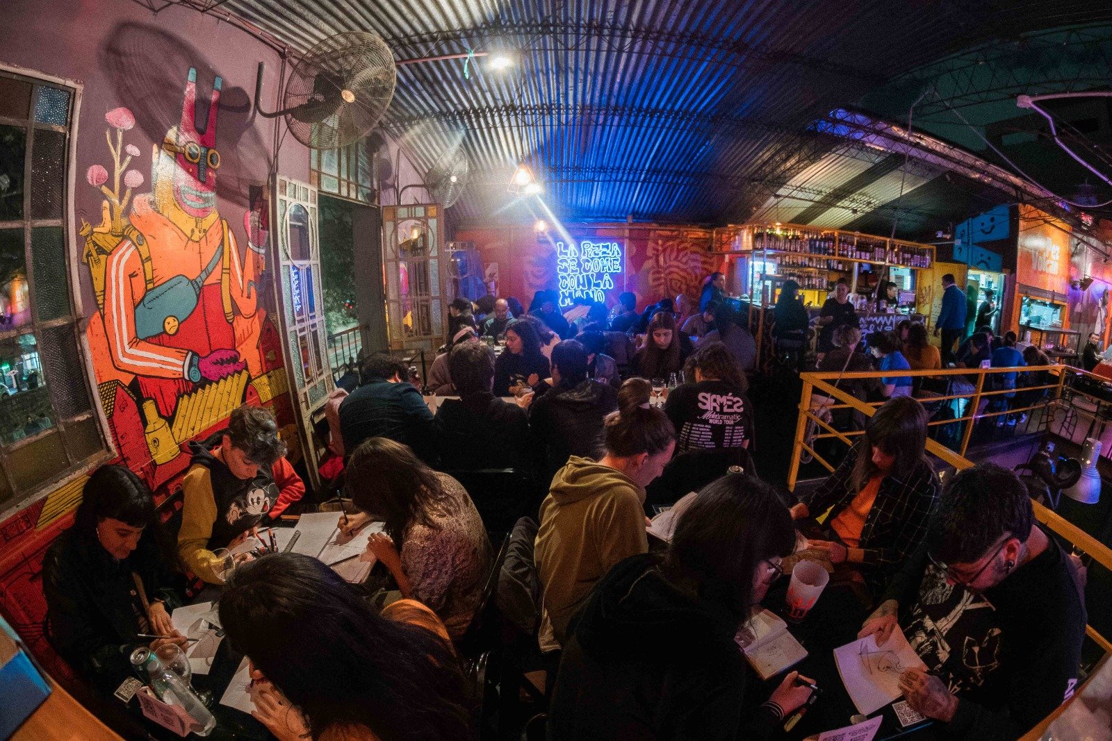 “La idea de crear la Dibujam nació a partir de una necesidad de crear un espacio que nucleara lxs ilustradores de Córdoba”, cuenta “From South”, como se hace llamar. Era fines de 2022 y la sensación era clara: talento sobraba, pero faltaba un lugar común. “Sentía que había muchísimo talento en la ciudad, pero que estábamos todos dispersos y no había un lugar de encuentro e intercambio. Quería hacer un club de dibujo”, recuerda. La propuesta encontró eco en el equipo de Pez Volcán y en noviembre de ese año se realizó la primera “Jam de dibujo del Pez”, germen de lo que vendría después.
