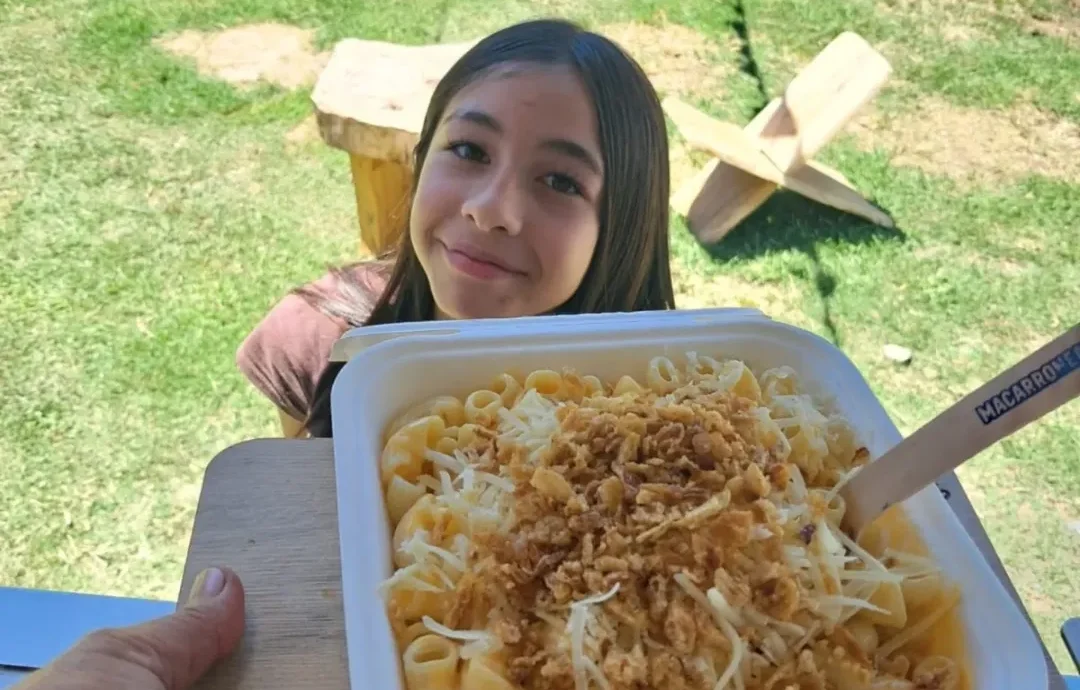 “La idea surgió porque mis hijas aman los macarrones con queso y acá no se consiguen”, explicó el artista, riendo bajo un sol que apenas traspasa los eucaliptos. Macarroneando no es solo comida: es una excusa para compartir mesa, charlas y risas entre desconocidos que se vuelven amigos alrededor del plato.