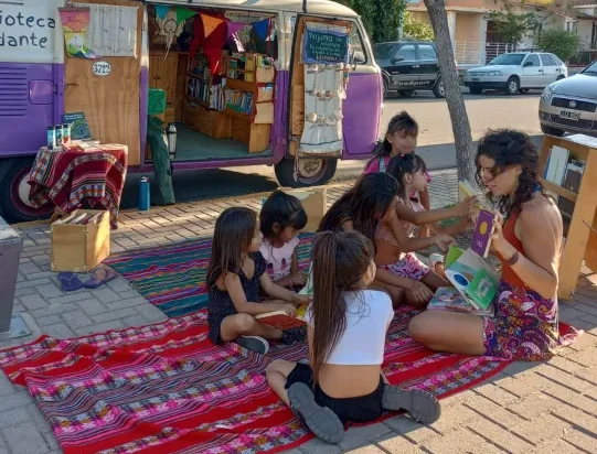 “La biblioteca rodante es el encuentro, el derecho al acceso a los libros, a la literatura y es habitar el espacio público”, afirma Laura, oriunda de Buenos Aires, quien es maestra de nivel inicial especializada en literatura infantil y juvenil, y técnica en Tiempo Libre y Recreación. Hoy, ejerce la docencia sin paredes ni techos, en un viaje sin principio ni final.