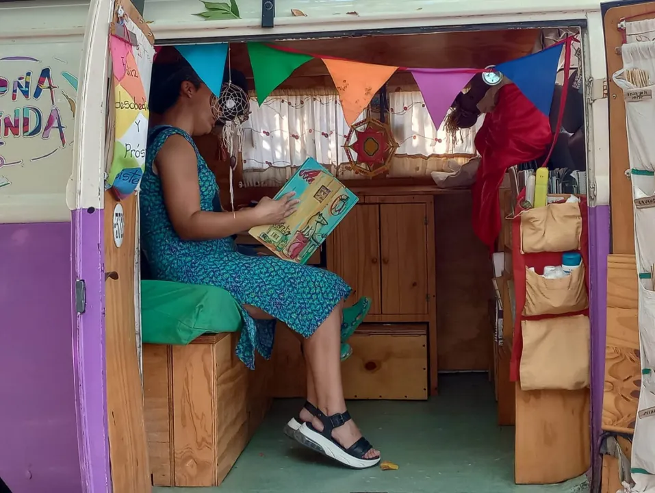 “La biblioteca rodante es el encuentro, el derecho al acceso a los libros, a la literatura y es habitar el espacio público”, afirma Laura, oriunda de Buenos Aires, quien es maestra de nivel inicial especializada en literatura infantil y juvenil, y técnica en Tiempo Libre y Recreación. Hoy, ejerce la docencia sin paredes ni techos, en un viaje sin principio ni final.
