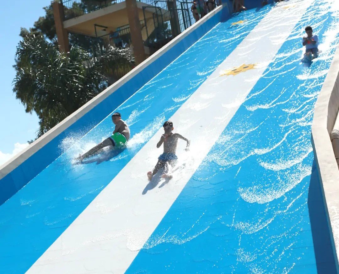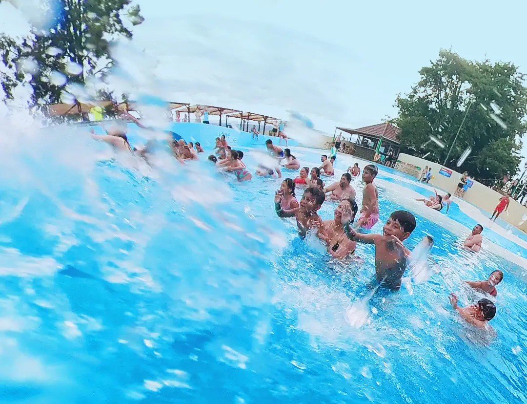 El predio cuenta con la pileta de olas artificiales más grande de la región, que incluye shows en vivo y ambientación musical permanente. Además, el parque dispone de rampas acuáticas de diferentes tamaños y un deslizador inflable gigante, destinado a los más audaces.
